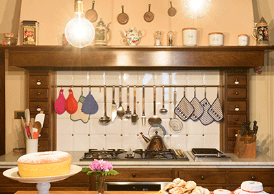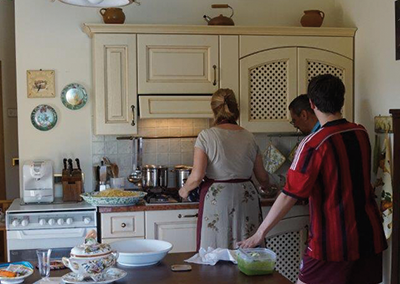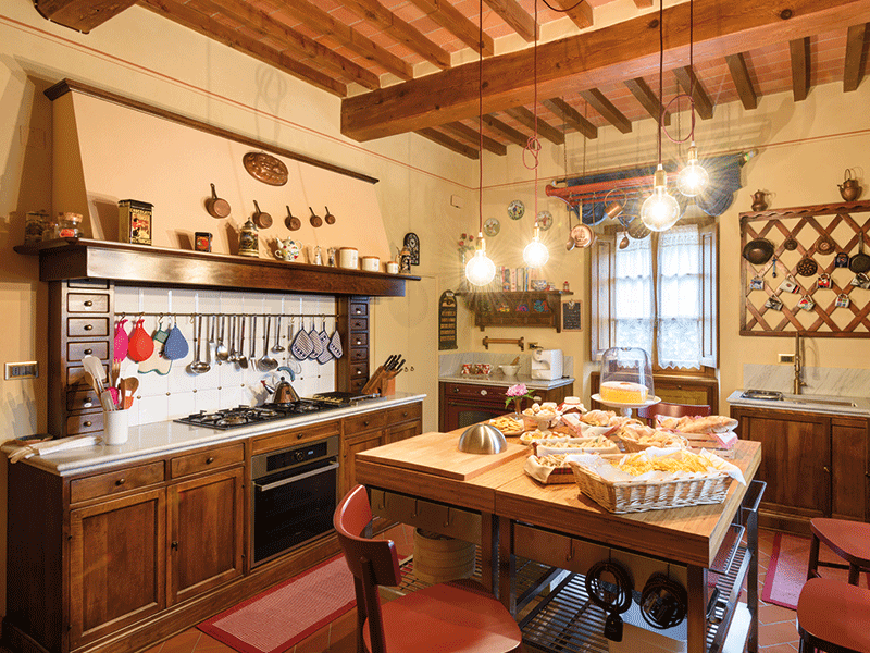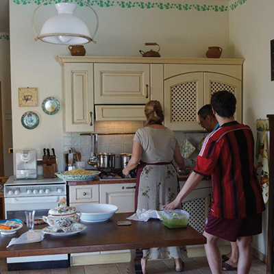 It’s the one designated for our cooking courses. It’s cozy, refined, and well-organized. Among all the rooms in the Villa, I love this one the most.