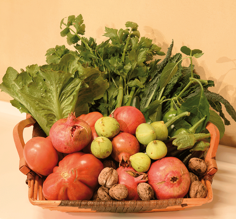 For me, cooking is passion, love, and poetry. The possibility of using the products we grow in our vegetable garden is a great satisfaction. We cultivate tomatoes, aubergines, courgettes, onions, garlic, and salad. We also have a variety of aromatic herbs, such as basil, parsley, sage, rosemary, thyme, and oregano. Every year we use our tomatoes to make tomato puree, a special sauce used all year round for meat sauce and pizza. We also prepare confiture, pickles and much more.